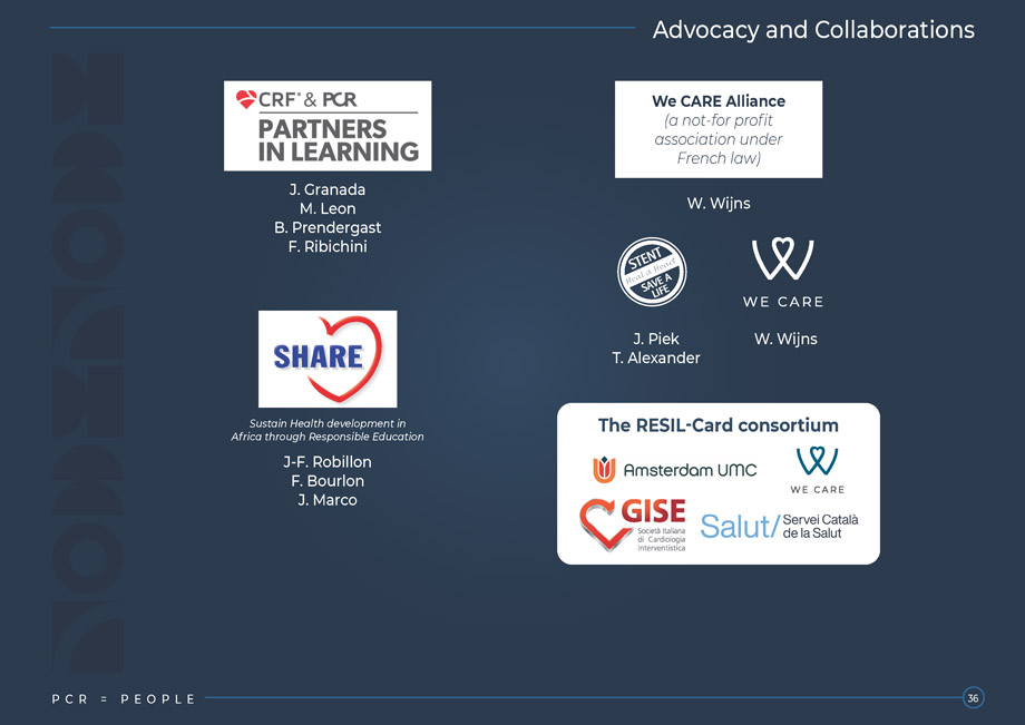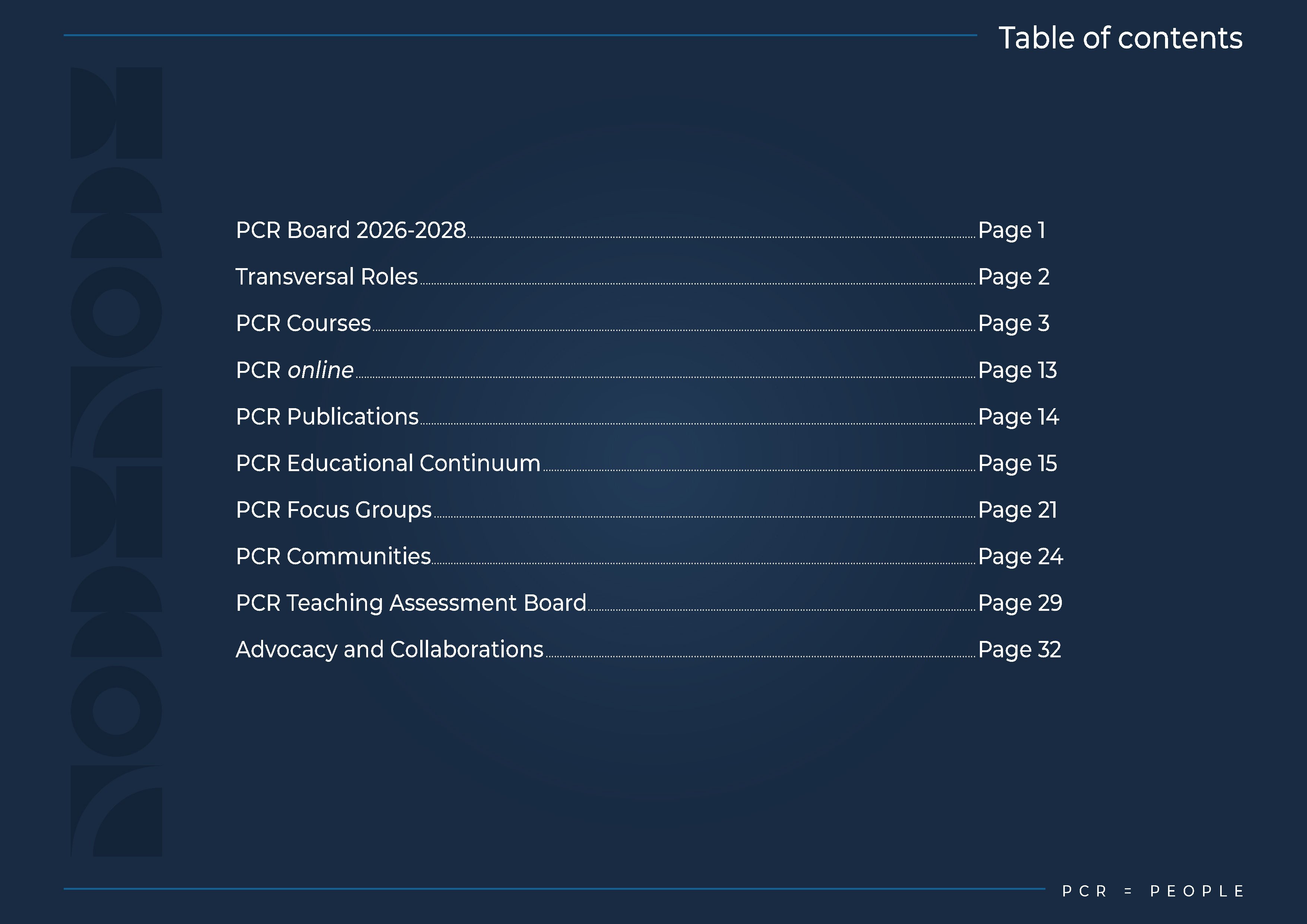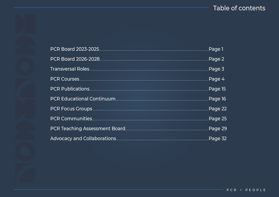 PCR’s ongoing progress is achieved by the host of talented individuals, too many to mention, who fulfil key roles across the multitude of PCR initiatives. Over the past three decades, countless people have contributed their expertise and time to improved patient care by fostering the sharing of knowledge, skills and experience worldwide.