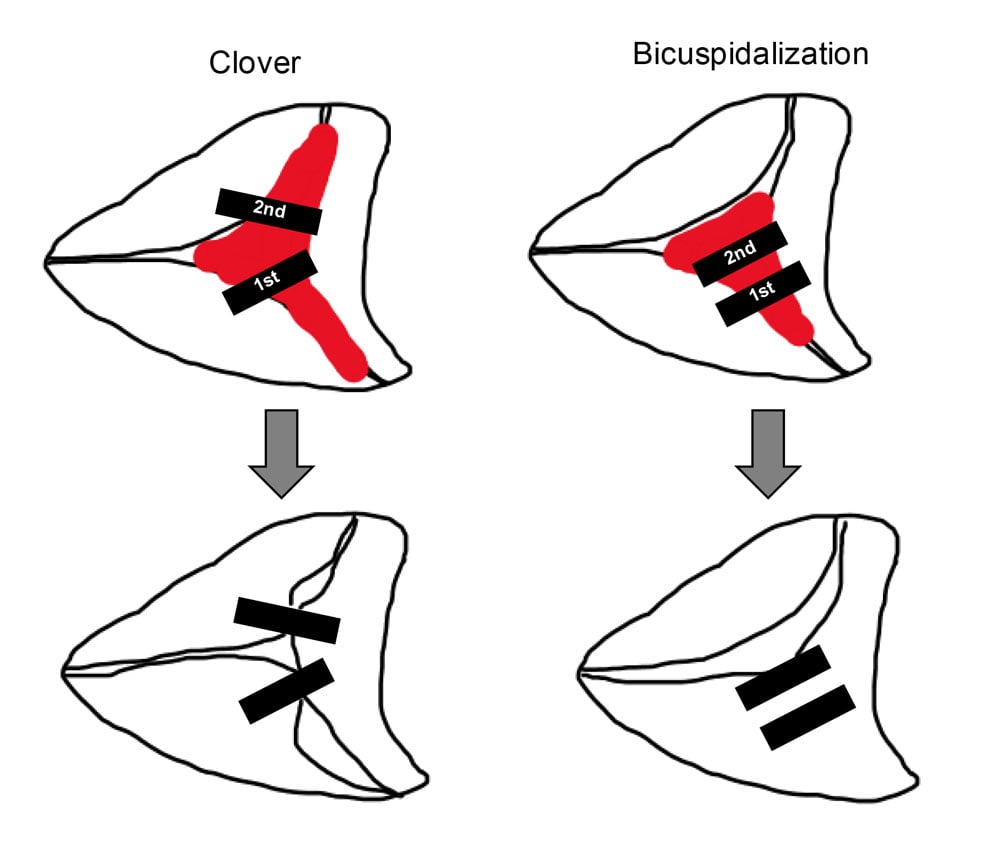 - Bicuspidalization technique: Bicuspidalization with two anterior-septal devices (“zipping technique”)