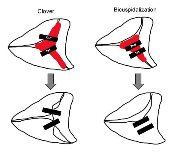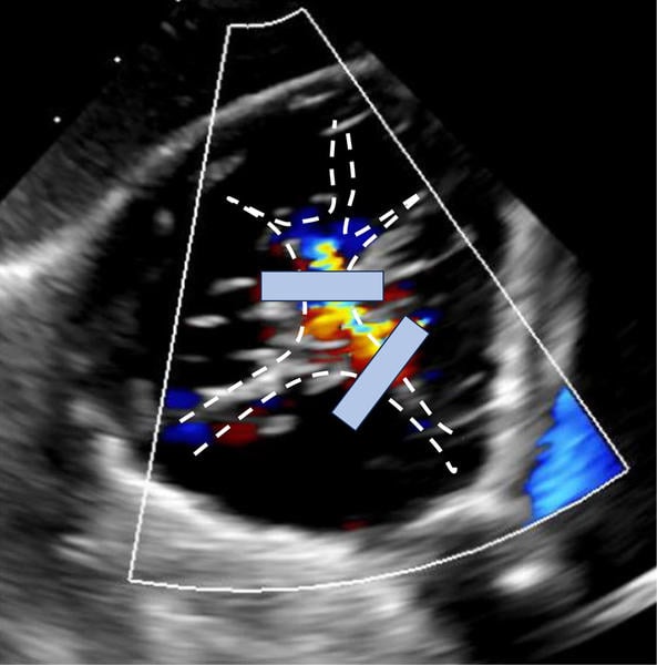 - Clover technique: First device implanted anterior-septal, second posterior-septal, to address both regurgitant jets