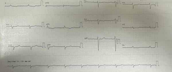 - LVEF 45% with global hypokinesis