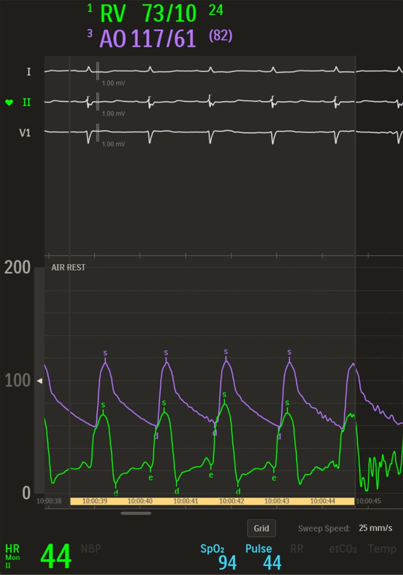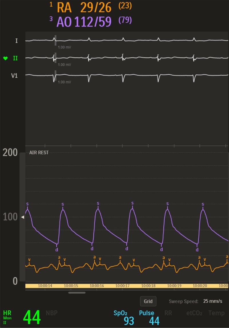 - RA 29/26/23 mmHg