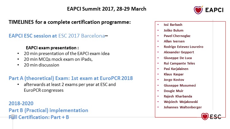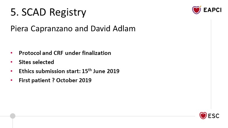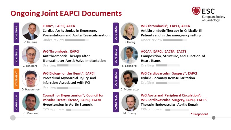 A. Baumbach, S. Brugaletta, R. Byrne, D. Capodanno, A. Chieffo, M. Gilard, L. Hinterbuchner, P. Ludman, F. Mauri, J. Mehilli, F. Saia, G.G. Toth, E. Van Belle