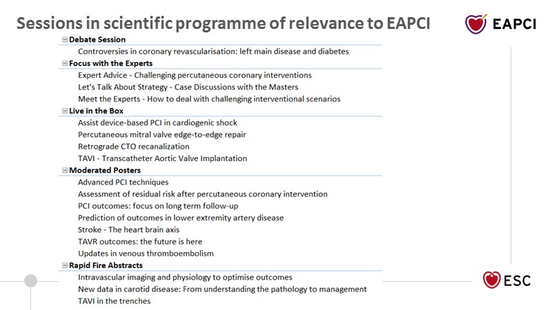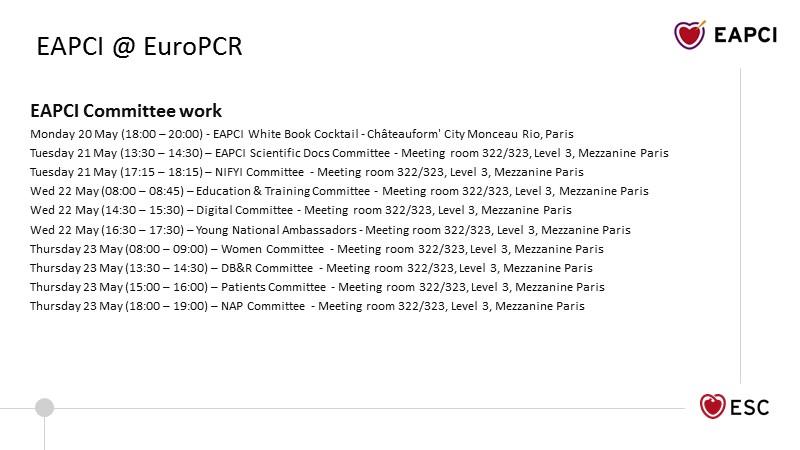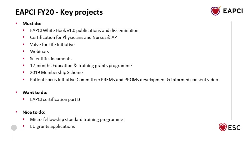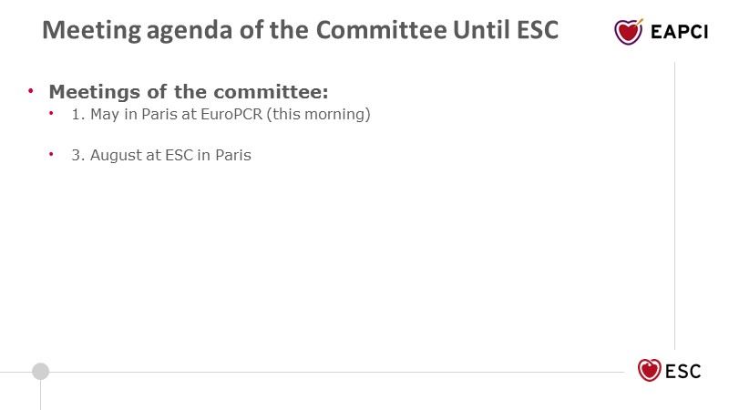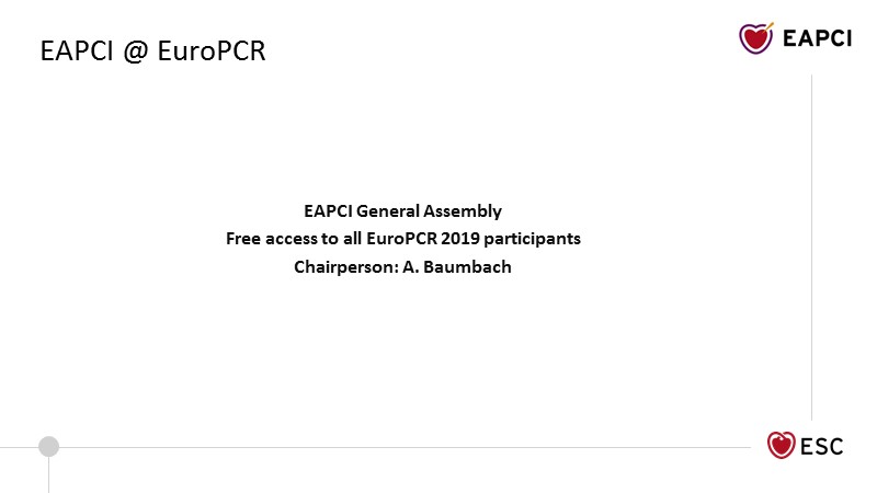 Consult this session to discover the EAPCI General Assembly's slides, presented during EuroPCR 2019. Learn more about the different committees and the grants programme.