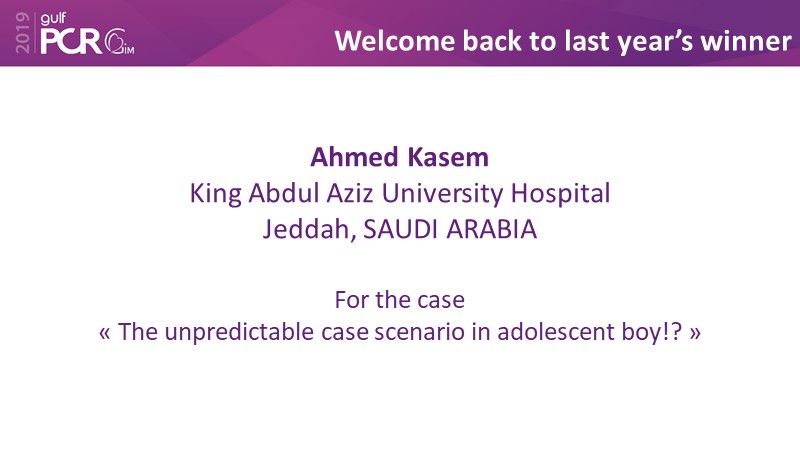 Consult this session to see the slides presented during GulfPCR-GIM 2019 Award and Closing Ceremony, which gathered 832 active participants, and discover who the best clinical case award winner was that year.