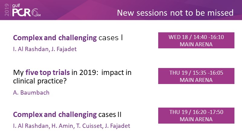 Consult this session to discover the slides presented during GulfPCR-GIM 2019 Opening Ceremony, the leading-edge interventional course in the Middle East, and learn more about the course directors, the programme committee members, the sessions and the live centers.