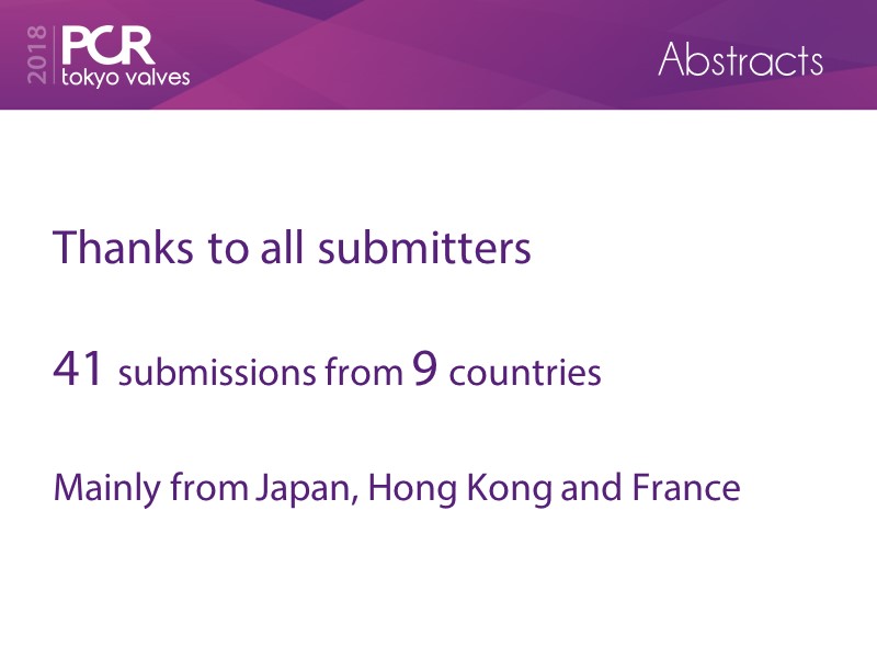 Consult this session of the PCR Tokyo Valves 2018 Closing ceremony and find out who the Best abstract winners are.