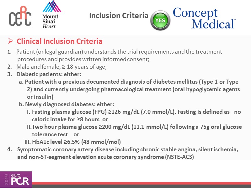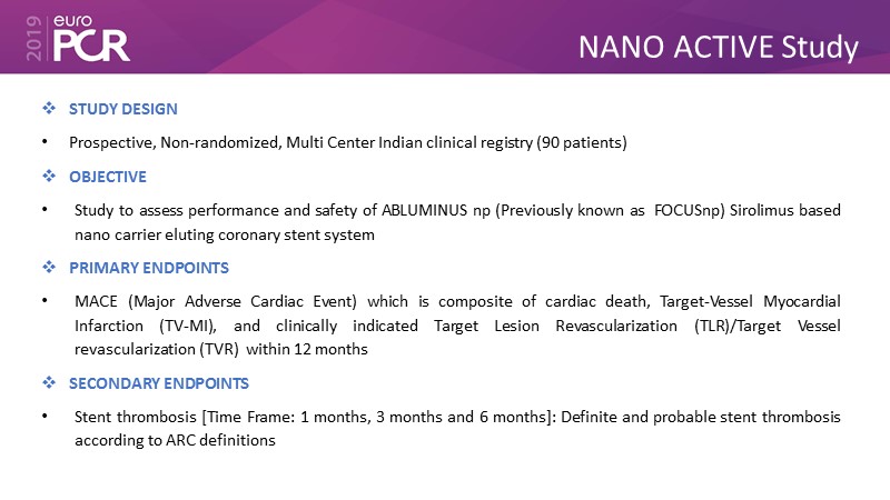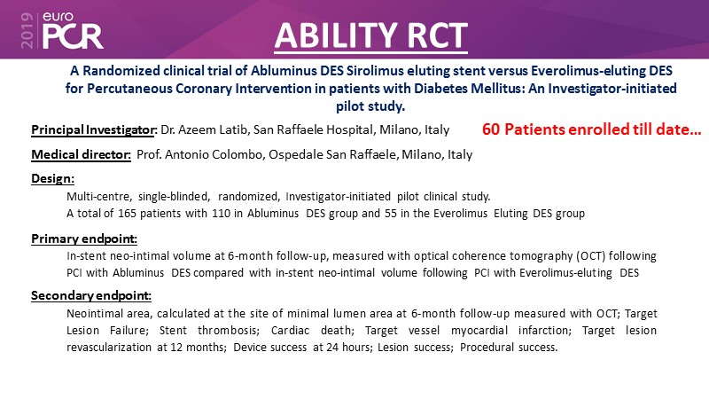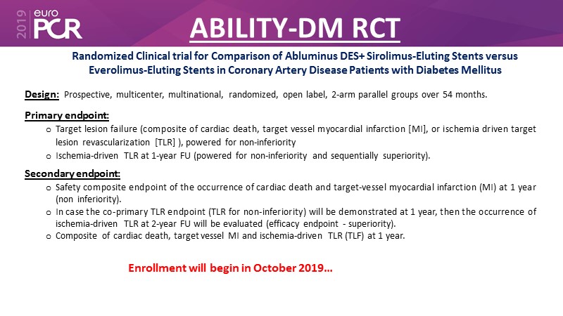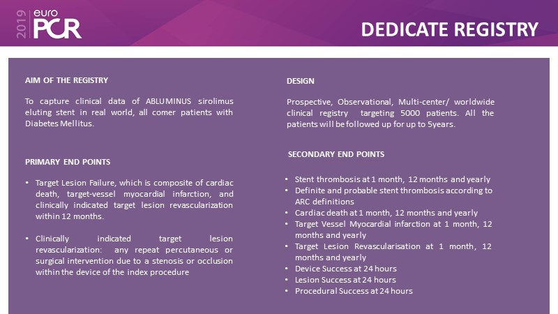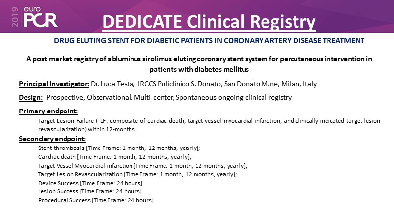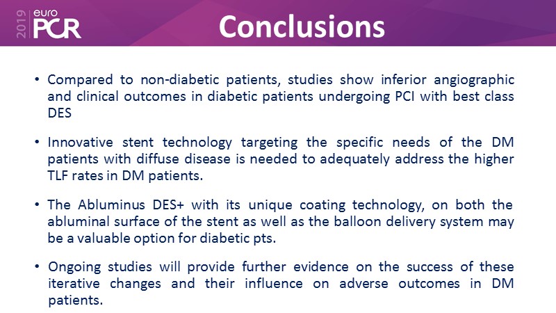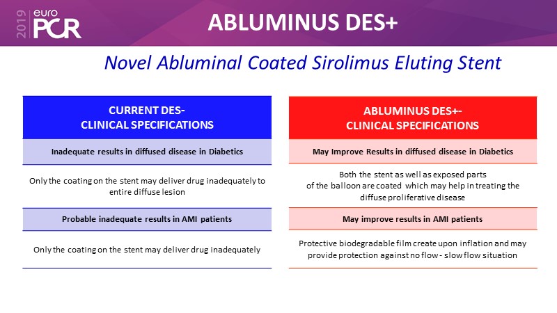 - To understand and discuss the need for a dedicated DES for diabetes mellitus (DM) and acute MI (AMI) patients