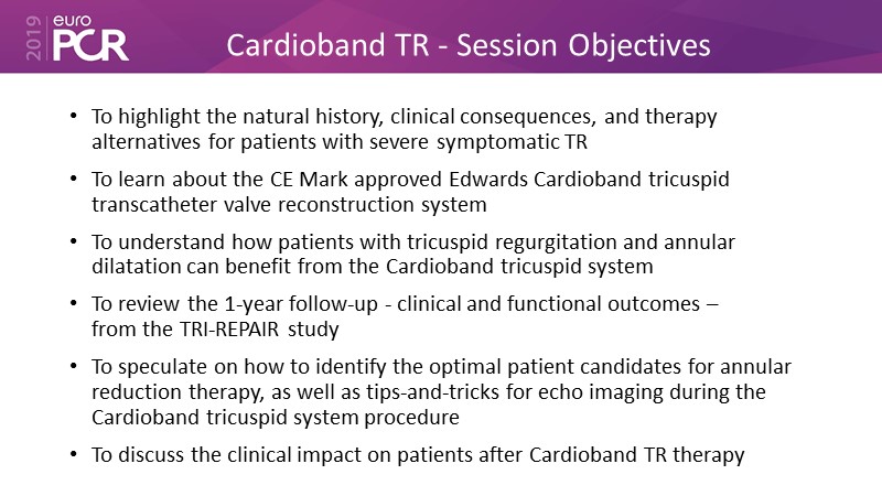 - To understand how patients with tricuspid regurgitation and annular dilatation can benefit from Cardioband system