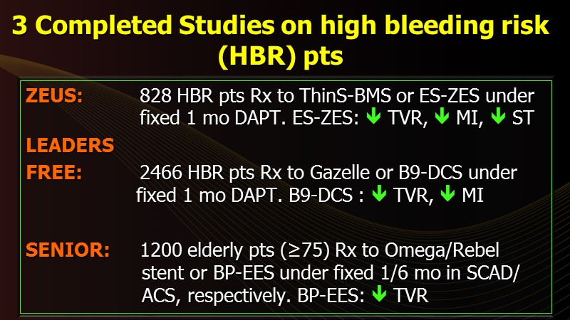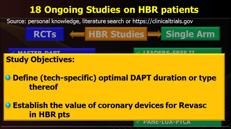 - To tailor PCI strategies to specific HBR patient for drug-device synergy