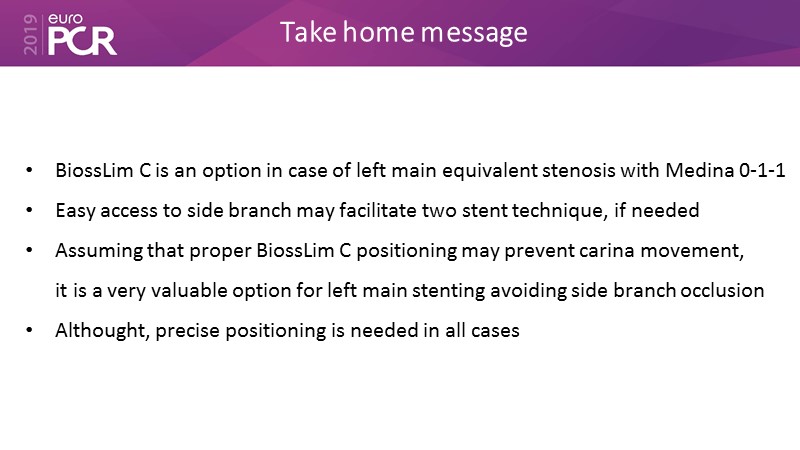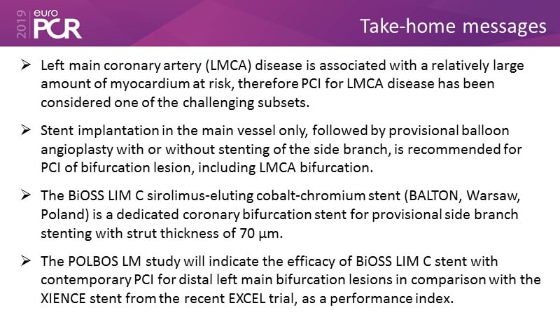 Distal left main stenosis: how to treat optimally with dedicated bifurcation stent BiOSS Lim C. Case-based session