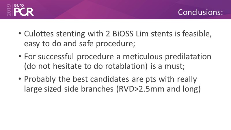 - To learn about applicability of the dedicated bifurcation stent for the different clinical presentations