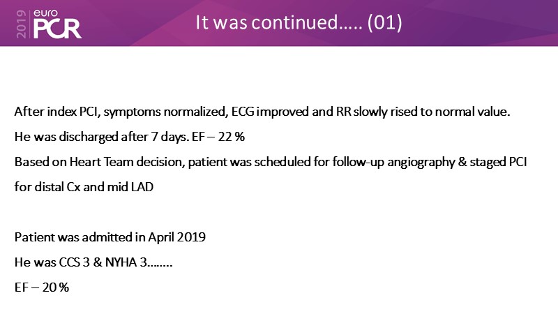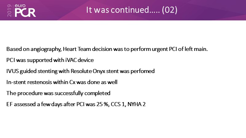Consult this session to learn more about the multiple technological options with dedicated bifurcation stent for complex left main bifurcation lesions, and the applicability of this stent for the different clinical presentations.