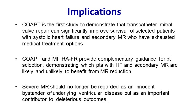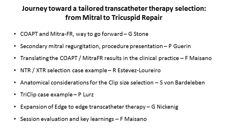 - To learn how will new clinical evidence (MitraFR, COAPT) shape the future of mitral transcatheter interventions