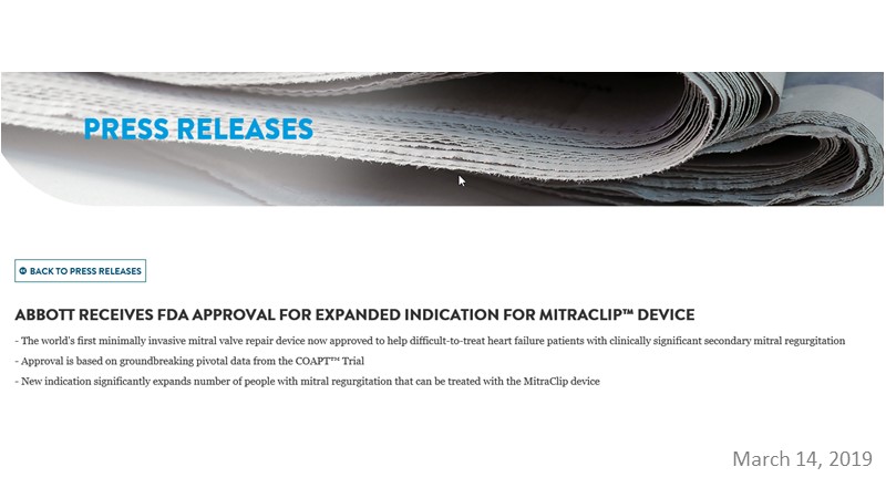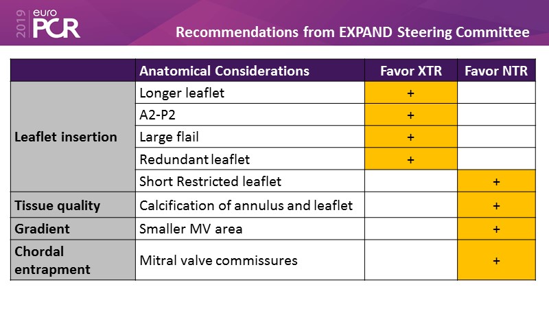 - To learn how will product innovation (Mitraclip NTR / XTR) drive improvement in procedural and clinical outcomes (EXPAND)