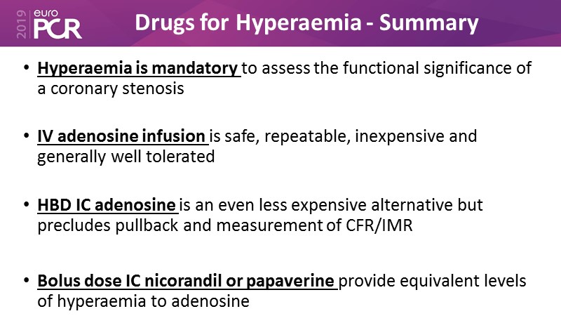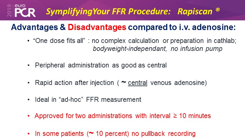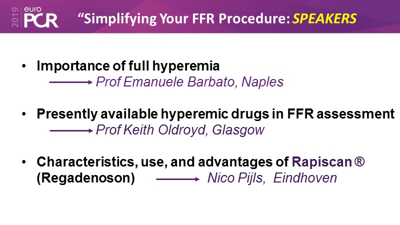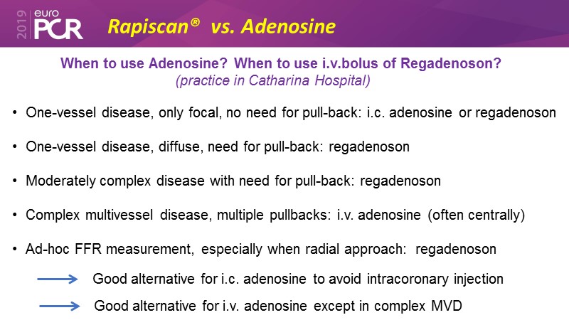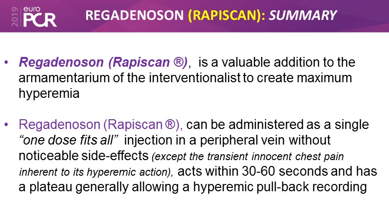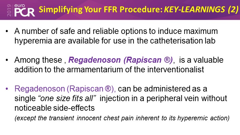 Consult this session to learn all about the latest techniques in FFR, to choose the appropriate hyperaemic agent and to know more about the use of regadenoson (Rapiscan).