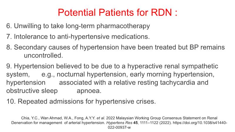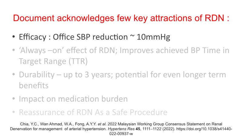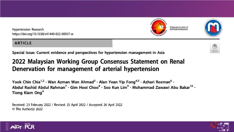 - To learn about the latest Malaysian Working Group consensus statement on renal denervation