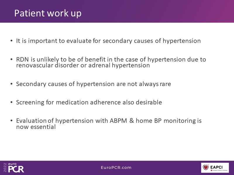 This EuroPCR 2022 session, which covers the latest clinical evidence around catheter-based ultrasound renal denervation, will also enable you to appreciate the distinct features of this approach, to understand perspectives on patient selection and patient preference, and to learn how to introduce and establish interventional hypertension therapy.