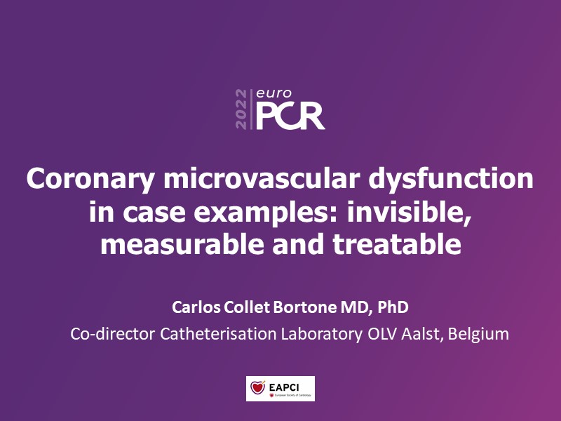 In this very practical session from EuroPCR 2022 focusing on microcirculation, learn how to perform a step-by-step assessment of the coronary microcirculation in the cathlab, discuss the whole management of patients with coronary microvascular dysfunction (CMD), and understand how to use coronary flow reserve (CFR) and index of microvascular resistance (IMR) to correctly diagnose a patient with INOCA.