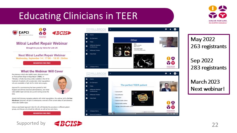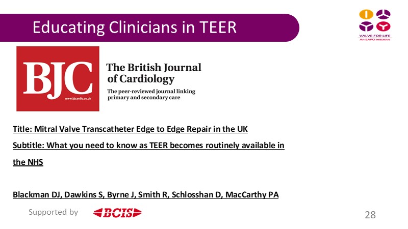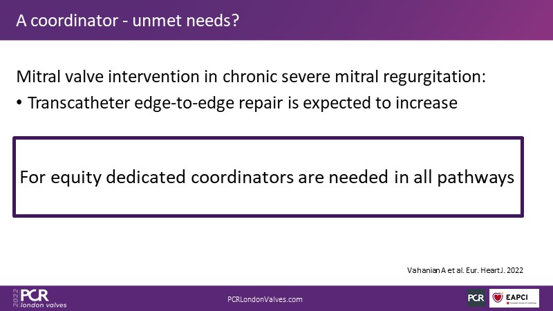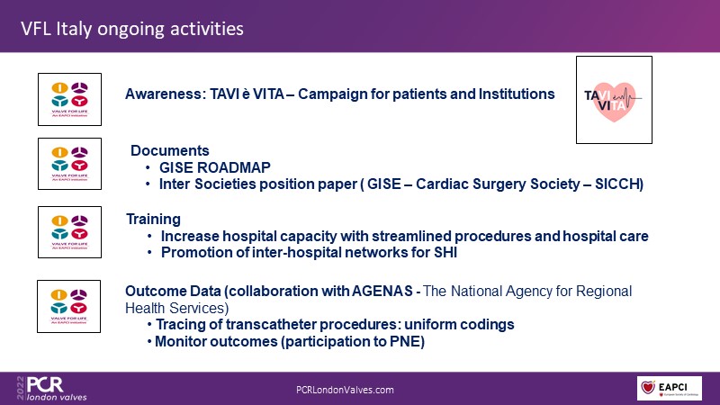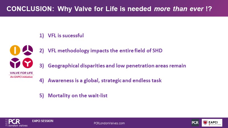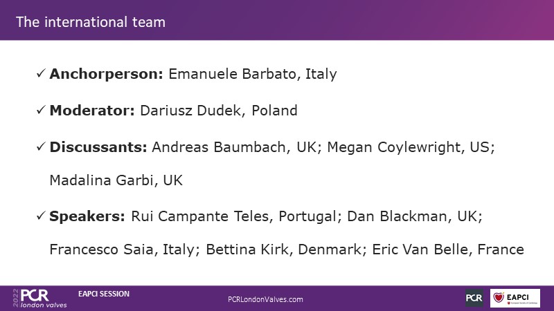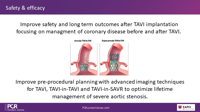 Consul this session if you want to understand current unmet needs in the field of transcatheter valve intervention, to appraise the impact of the Valve for Life initiative on adoption of TAVI across Europe, and to hear about the new EAPCI Core Curriculum for training in interventions for structural heart disease.