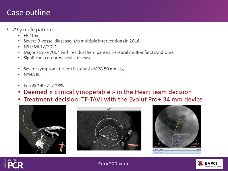 How to deal with challenging anatomies? Find answers in this EuroPCR 2022 session with case studies to explore and learn how to achieve optimal patient outcomes with Evolut platform, uncover practical tips and techniques to achieve implant precision and control, and become familiar with technical considerations and procedural execution of TAVI.