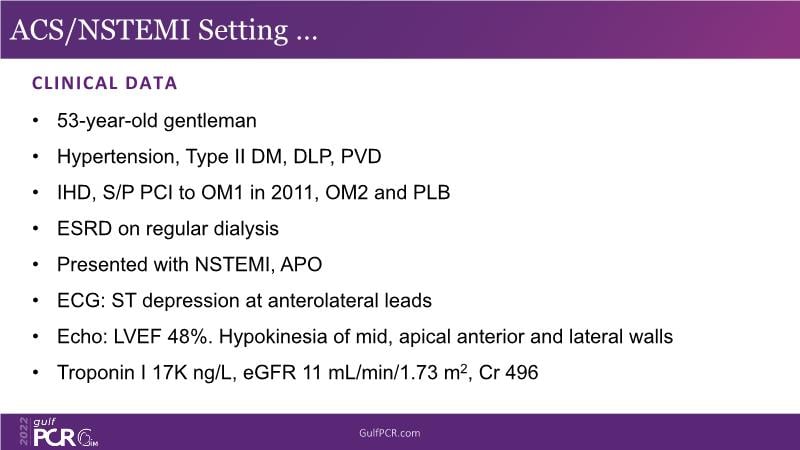 In this session, follow a LIVE case from the Chest Diseases Hospital in Kuwait and learn what the best strategy is to treat patients who present with a very long calcified coronary artery lesion, as well as how to select the best device and which different types of stents can be used.