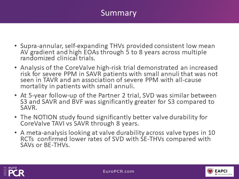 - To become aware of the durability data of the current TAVI platform