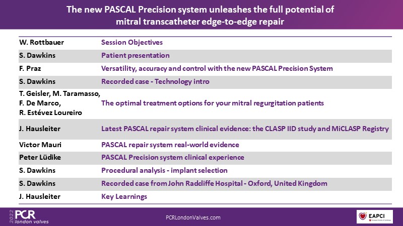 - To participate in a recorded case demonstration using the novel PASCAL Precision system for the treatment of mitral regurgitation