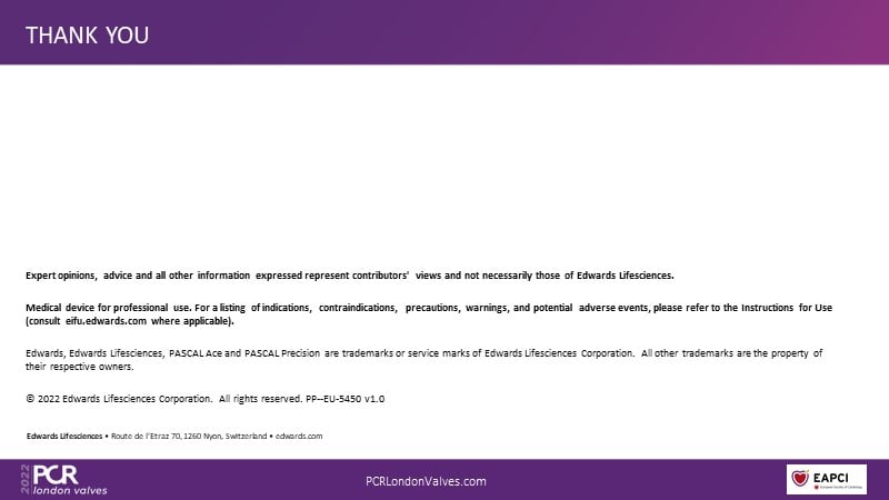 Join this panel of experienced physicians to learn more about the novel PASCAL Precision system and to discuss implant selection and clinical data. Finally, participate in a recorded case demonstrating the use of the PASCAL Precision system for the treatment of mitral regurgitation.