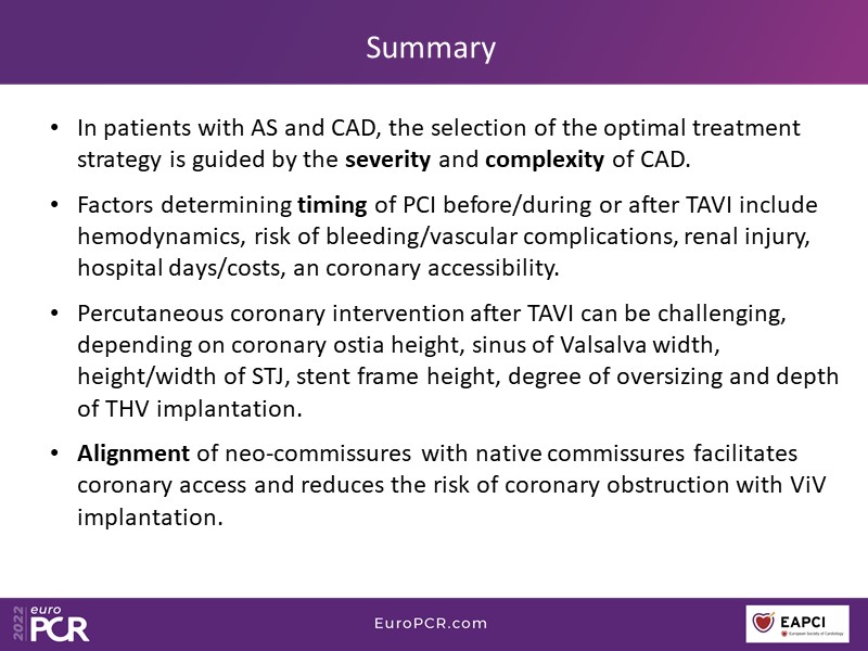 - To discuss the right time of PCI in TAVI patients (steps on the procedure)