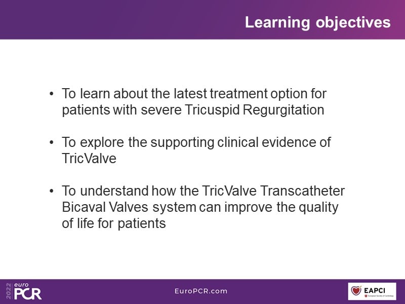 Watch this EuroPCR 2022 session to learn all about the latest treatment option for patients with severe TR, to discover the supporting clinical evidence of TricValve, and to understand how the TricValve Transcatheter Bicaval Valves System can improve patient's quality of life.