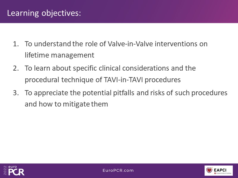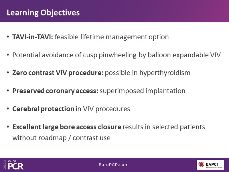 - To learn about particular clinical considerations and the procedural technique of TAVI-in-TAVI procedures