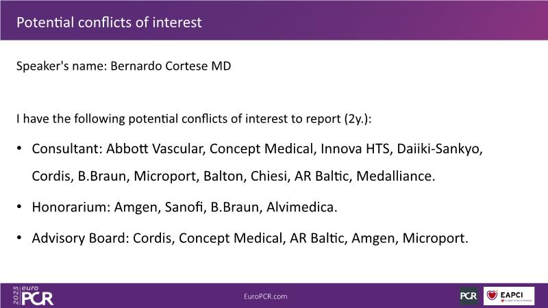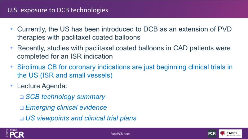 - To look at how well the DES +DCB stent platform performs in complex settings through case presentations