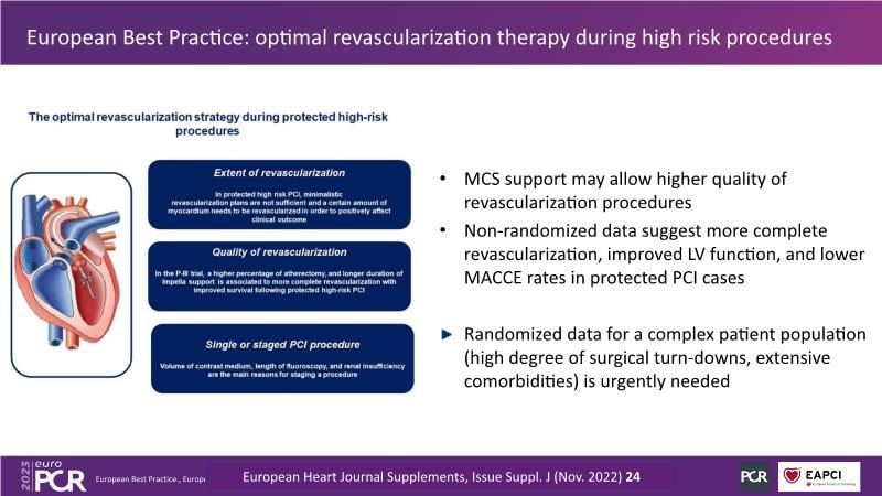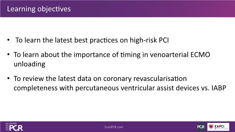 This session will enable you to have a look at the best practice approach on high-risk PCI, to learn more about timing of LV unloading in ECMO patients, and to compare revascularization completeness with percutaneous VAD vs IABP.