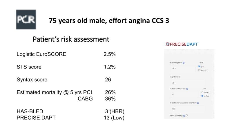 Want more training on bifurcation stenting? Learn from the case of this 75-year-old active man, a retired engineer, suffering from effort angina CCS 3 for 6 months, referred to the centre by his cardiologist for a coronary CT scan. He is a former smoker, has a medical history of hypertension, and a previous diagnosis of Paroxymal A Fib (CHA2DS2, VASc3). Watch case.