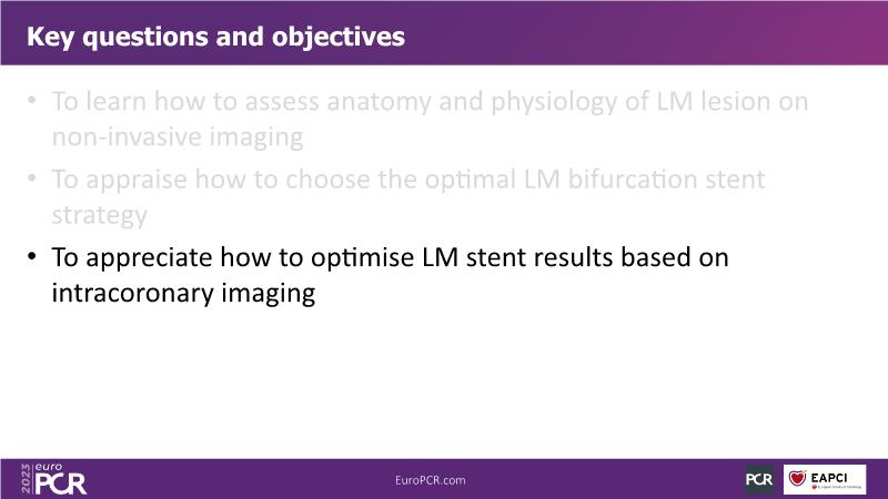 - To appreciate how to optimise left main stent results based on intracoronary imaging