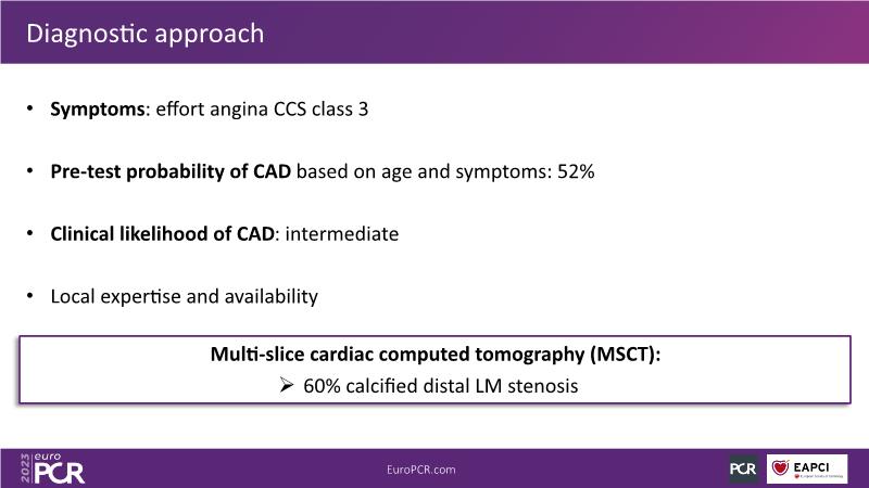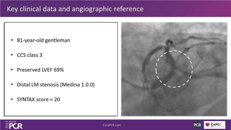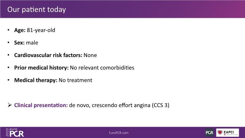 In this session, experience a multimodality approach, including CTA, angiography and OCT, and learn how to reestablish good hemodynamic of the bifurcation, by analyzing the case of an 81-year-old man with no risk factors, no relevant comorbidities, and no treatment, who presented with crescendo effort angina.