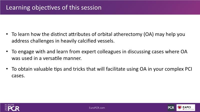 - To obtain valuable tips and tricks that will facilitate using OA in your complex PCI cases