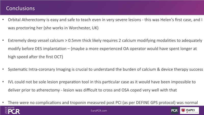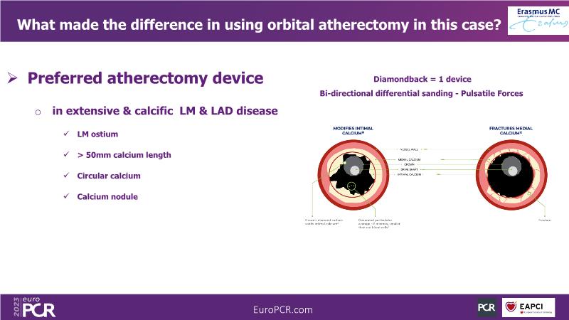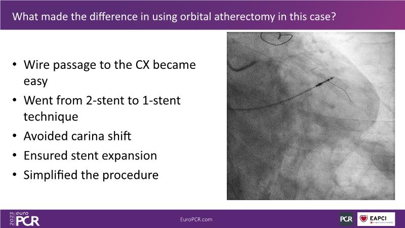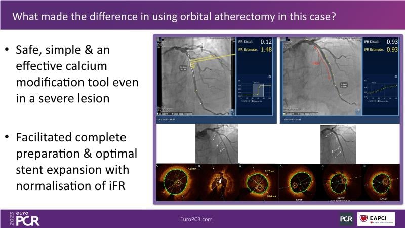 The aim of this session is to address the question of how to optimise outcomes for high-risk patients by analyzing two real-life cases for discussion: a distal calcified left main trifurcation and a high-risk PCI with orbital atherectomy.