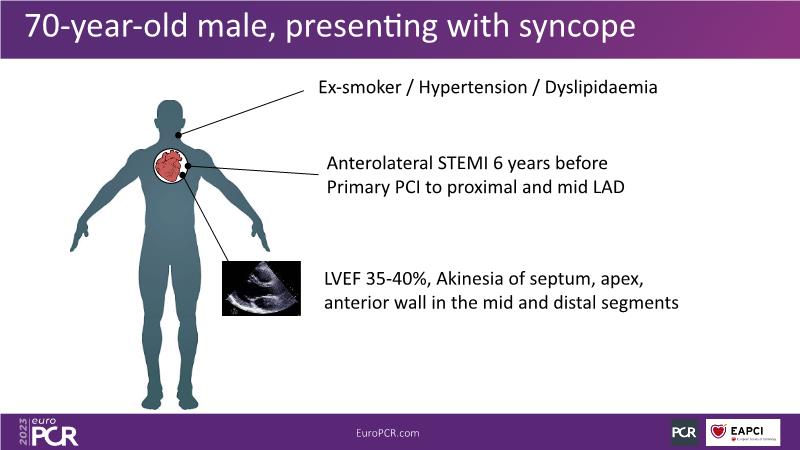 Follow the case study of this 70-year-old ex-smoker male patient with HTN, dyslipidemia, previous primary PCI to proximal and mid LAD because of anterolateral STEMI, presenting with syncope, and find out, through the debates around his treatment, how to use physiology in 2023.