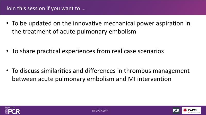As there is a need for more awareness, training and data on primary percutaneous pulmonary intervention, watch this session to learn from shared pioneering experience!