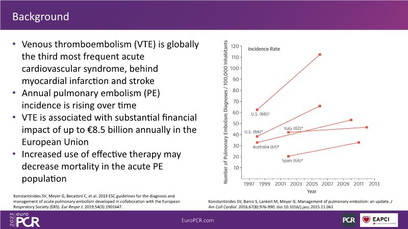 - To discuss similarities and differences in thrombus management between acute pulmonary embolism and myocardial infarction intervention