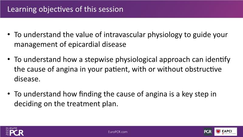 - To understand how a stepwise physiological approach can identify the cause of angina in your patient, with or without obstructive disease