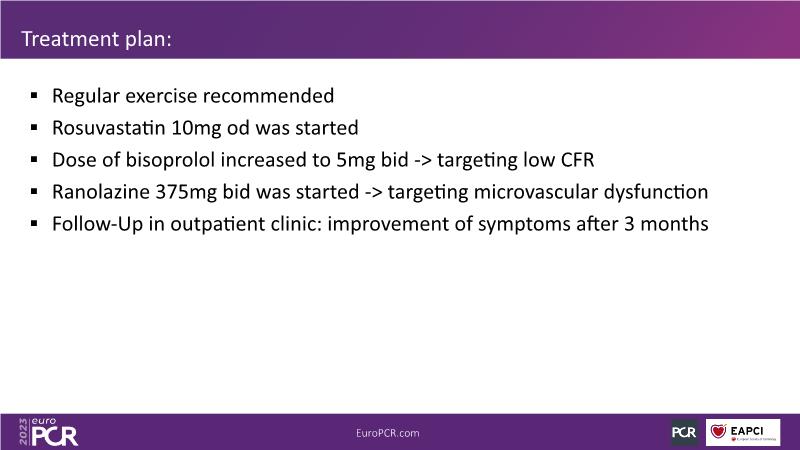 In this session focused on epicardial and microcirculatory dysfunction, discuss how to treat both a 72-year-old smoker man with HTN, diabetes, hyperlipidemia, who presented with angina and dyspnea with moderate exertion over the last months, and a 69-year-old ex-smoker man with HTN and untreated LDL 125 mg/dl who presented with chest pain of unknown origin started about 6 months ago and shortness of breath on exertion.