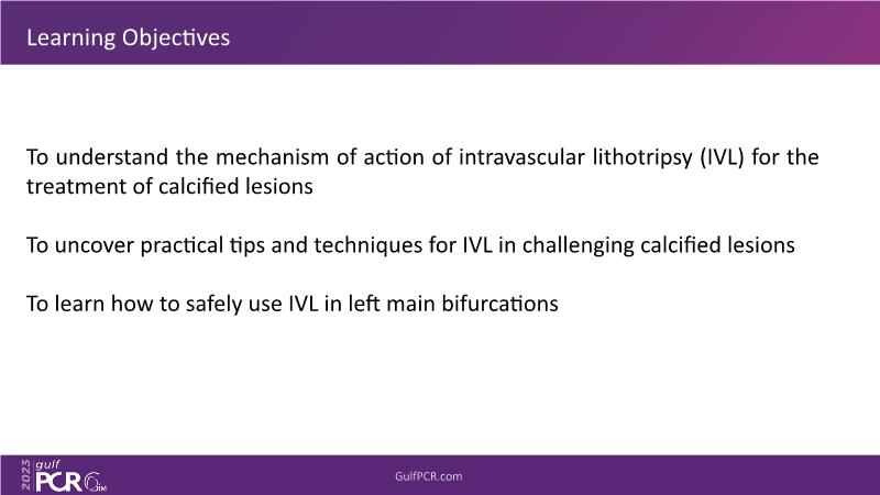 - To understand the mechanism of action of intravascular lithotripsy (IVL) for the treatment of calcified lesions