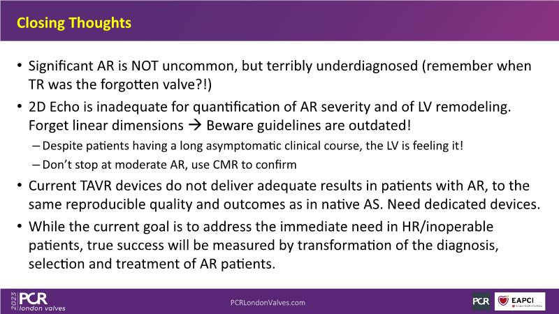 Consult this session if you want to understand the challenges of imaging for aortic regurgitation and how it can lead to underdiagnosis. Discover the data from the ALIGN-AR trial studying TAVI in aortic regurgitation patients, and learn about the Trilogy valve and the future of TAVI for patients with aortic regurgitation.