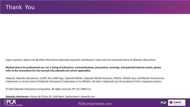 - To discuss and interact with the audience during case-based discussion of PASCAL Precision for treatment of mitral regurgitation
