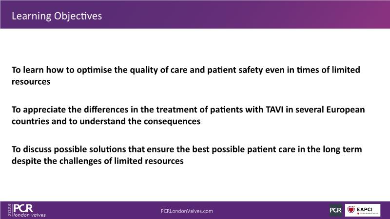Join this session to discover strategies for optimizing care quality and patient safety, especially in resource-constrained environments. Gain insights into variations in TAVI patient treatment across European countries, understanding the associated consequences. Engage in discussions exploring potential solutions to ensure long-term, high-quality patient care despite challenges posed by limited resources.