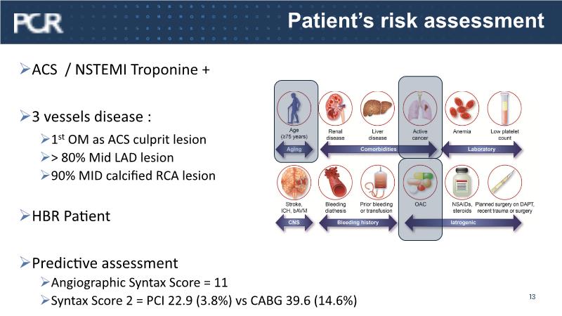 - To reflect about optimal PCI strategy for high bleeding risk patient with ACS