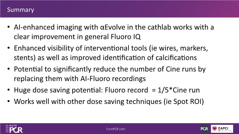Explore this session to discover the latest innovations in interventional cardiology images, including the benefits of artificial intelligence and angio-CT in PCI/SHD procedures. Learn about Alphenix Evolve and the initial experiences with AI imaging in daily cathlab practice, alongside intraprocedural angio-CT guided LAAO, and engage in discussions on meaningful tools that can transform patient care.