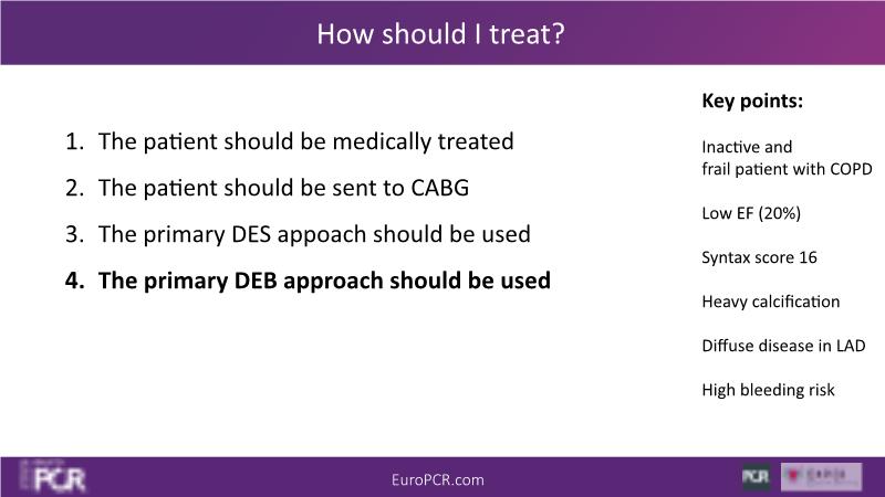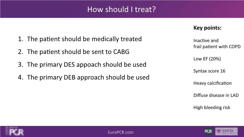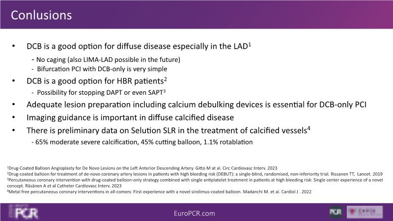 Through the study of two cases, this session examines the need for stenting bifurcation lesions and the role of DEB technology in avoiding stent-related complications in long diffuse disease. It emphasizes the benefits of SELUTION SLR balloons for de novo lesions, discussing how sustained limus release technology can broaden DEB indications and reduce metal usage, understanding the limitations of DES and the emerging role of DEB with sustained limus release, and learning how to identify dissections that can be left unstented.